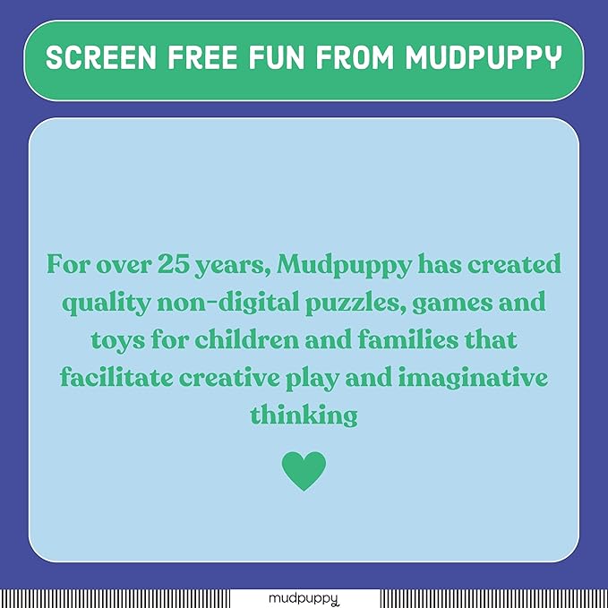 • MUDPUPPY - For over 25 years, Mudpuppy has created quality non-digital puzzles, games and toys for children and families that facilitate creative play and imaginative thinking. One of our core design principles is to engage kids and promote learning without the use of digital screens or technology. Mudpuppy is committed to designing and producing eco-friendly products that have a minimal carbon footprint. All Mudpuppy products adhere to CPSIA, ASTM, and CE Safety Regulations