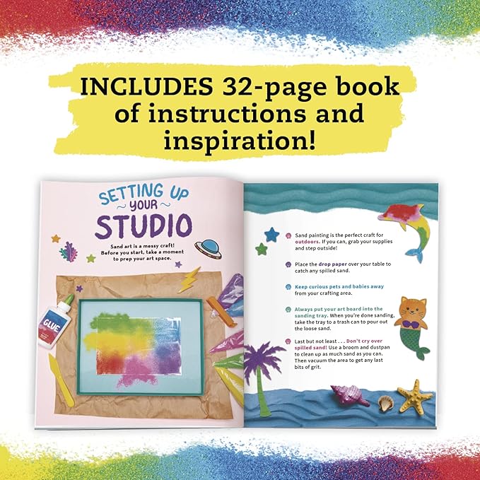 - Six colors of bright sand and step-by-step instructions let you craft beach-inspired artwork that works all year round