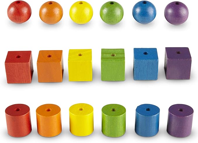 - Set includes 20 activity cards, 108 wooden beads in 6 colors, two 36" black laces with 1" plastic tips, and activity guide. Ages 3+