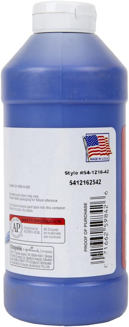 - CRAYOLA TEMPERA PAINT: Features 16oz of Blue Paint in an easy squeeze bottle.