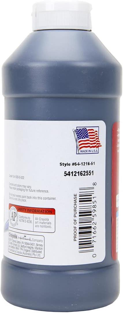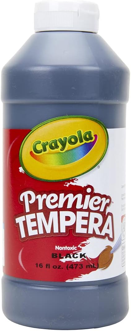 - CRAYOLA TEMPERA PAINT: Features 16oz of Black Paint in an easy squeeze bottle.