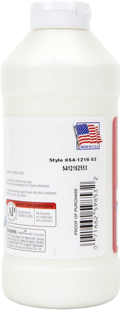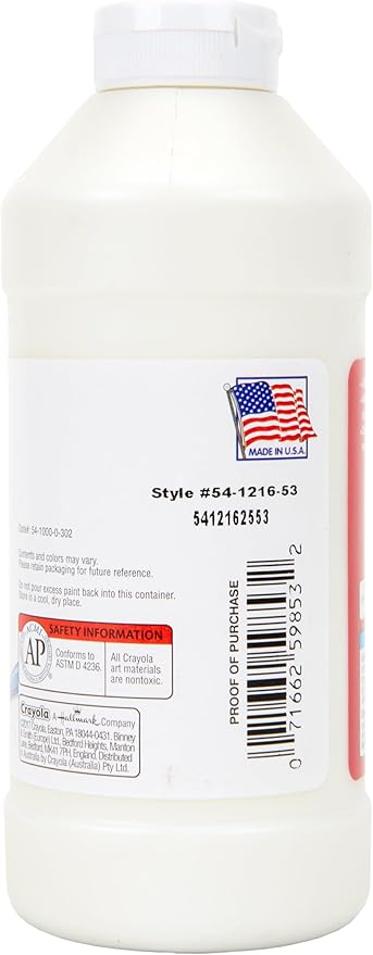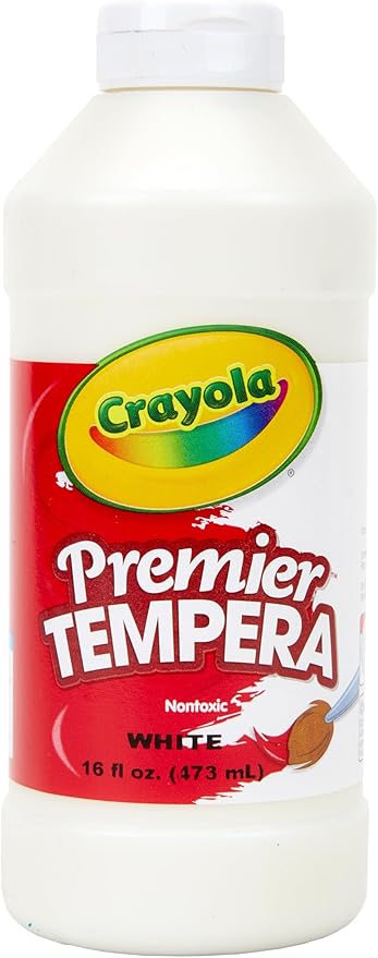 - CRAYOLA TEMPERA PAINT: Features 16oz of White Paint in an easy squeeze bottle.