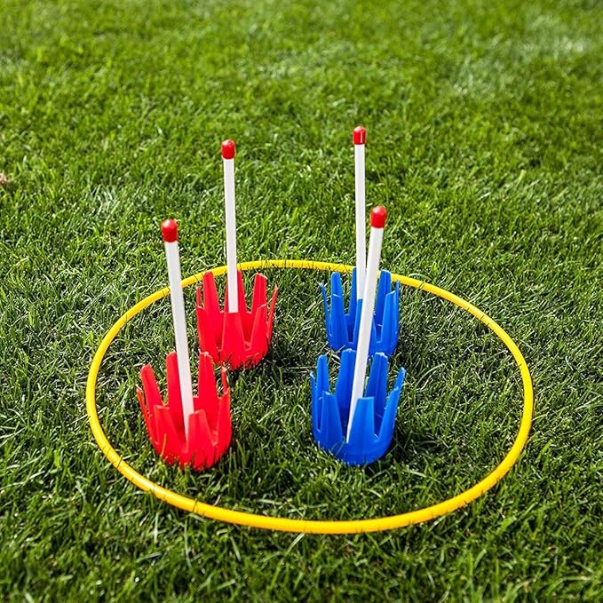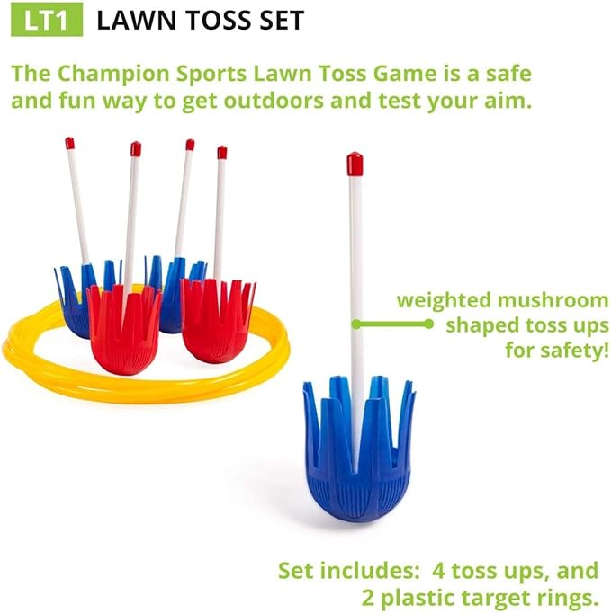 - COMPLETE SET - Among the best outdoor games for family fun, the lawn dart set includes 4 weighted mushroom shaped toss ups and 2 target rings