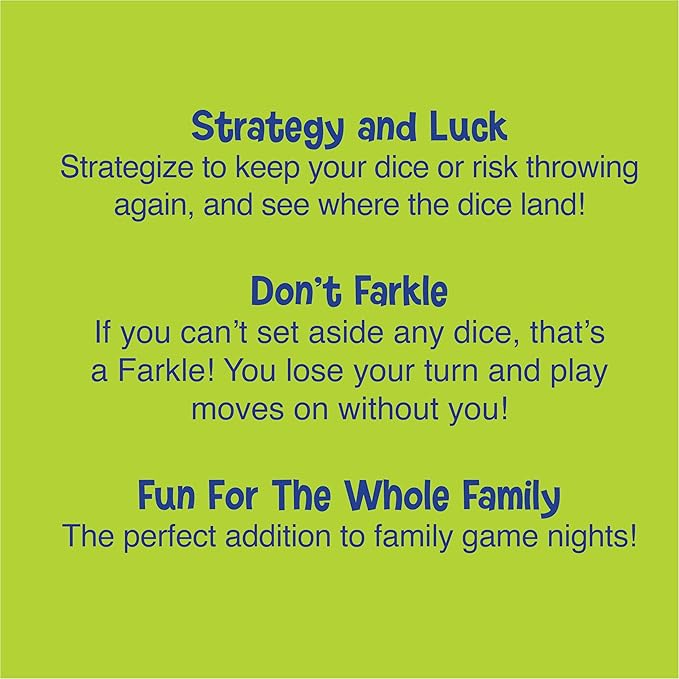 - Don't Farkle — If you can’t set aside any dice, that’s a Farkle! You lose your turn and play moves on without you