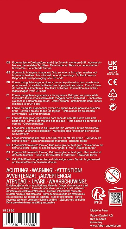 Faber-Castell Grip Color Markers - 20 Washable Fineline Markers