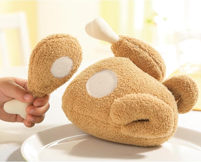 - REALISTIC PRETEND PLAY FOOD: This soft, plush roast chicken play food set includes detachable drumsticks & wings with hook-and-loop fasteners, perfect kitchen toys for enhancing imaginative role play.