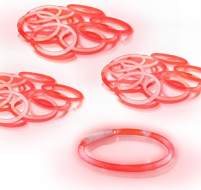 - Bulk Pack for Festive Fun: Includes 50 premium-quality Red glow stick braceletss, perfect for Mardi Gras, St. Patrick's Day parades, parties, and nighttime events.