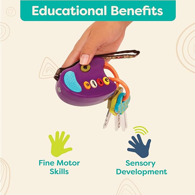 - BEEP. BEEP. With 4 fun car sounds - designed to go easy on grown-up ears –on a chunky purple remote, this set of baby keys is sure to keep tiny fingers busy for hours.