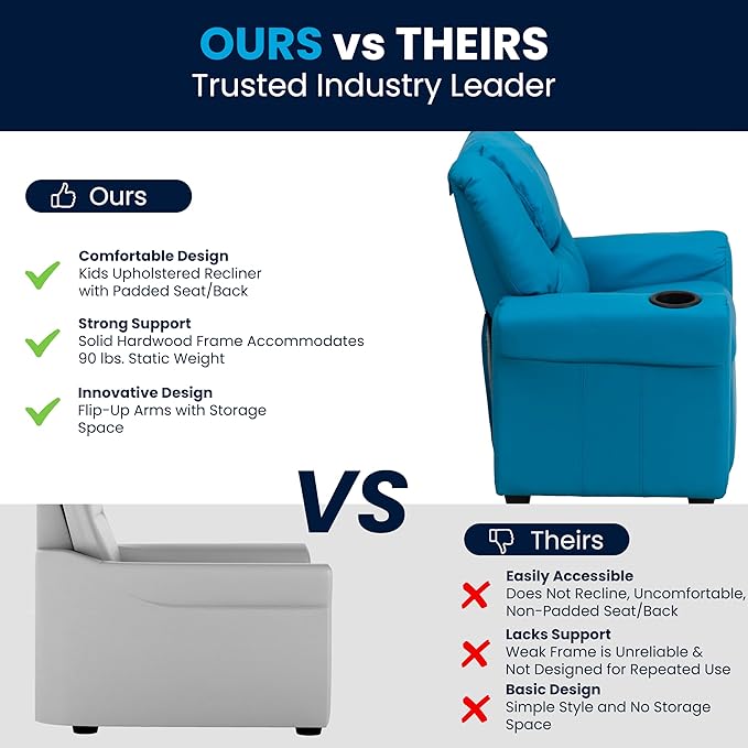 • KID-FRIENDLY AND COMFY: Plush padded back and seat provides superior comfort for your little ones, and the safety feature will not allow the chair to recline unless your child is in seated position and pulls ottoman 1" out and then reclines