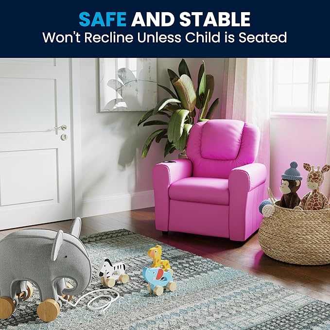 - CHILDRENS RECLINER CHAIR: Offers the perfect seat for children that is just their size and looks just like their parent's, making for a great addition to any living room, playroom, bedroom, or any room in your home