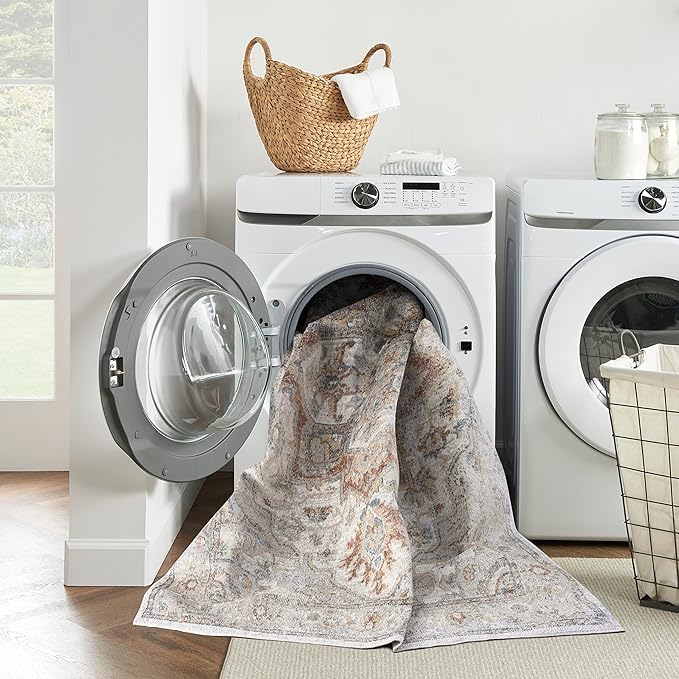 - Washable rug adds vintage flair to farmhouse and boho décor