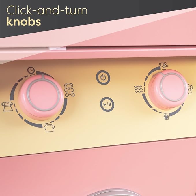 - LOADS OF HANDS-ON PLAY: Knobs to turn. Doors to open. There's plenty of opportunities for fine motor skills in this made-of-wood set that'll last through many laundry days.