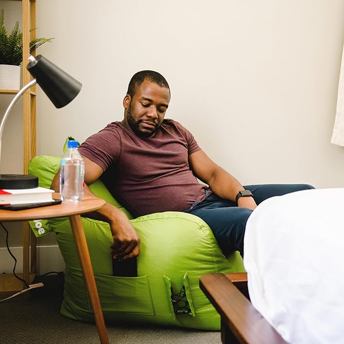 Big Joe Dorm Bean Bag Chair with Drink Holder and Pocket, Spicy Lime Smartmax, Durable Polyester Nylon Blend, 3 feet