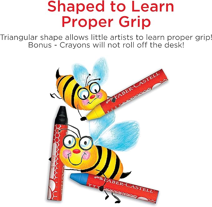 - SHAPED TO LEARN PROPER GRIP: Triangular shape allows little artists to learn the proper grip. Bonus - these jumbo crayons will not roll off the desk!