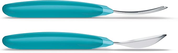 - Durable stainless steel fork and spoon are sized just right for toddlers with handles designed to keep tips off table and away from germs