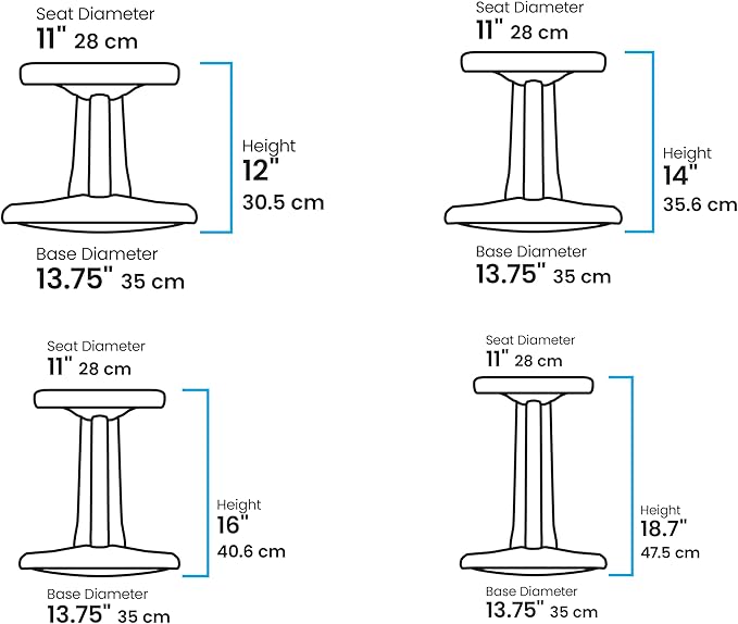 - COLORFUL DESIGN & MADE IN THE USA: Match any space with vibrant color options while supporting American made quality. With multiple sizes in Preschool (12in) for ages 4-5 years old, Kids (14in) for ages 6-7 years old, Junior (16in) for ages 8-9 years old, and Preteen (18.7in) for ages 10-11 years old, The KORE DESIGN Wobble Chair serves as a great youth desk and study chair for classrooms, preschools, and homes. Style meets function for growing imaginations!