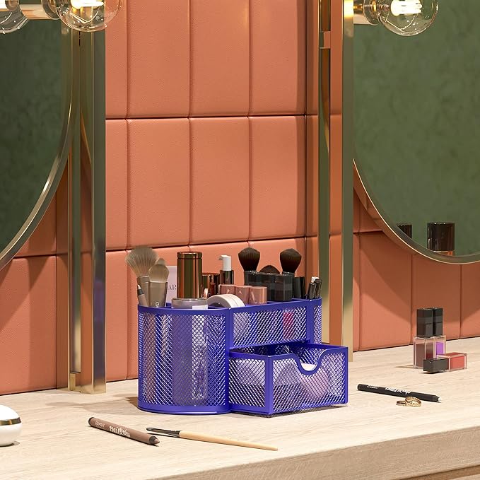 - Multifuction Small Desk Organizer: This desk organizer is no installation required. It perfect for storing your desktop stationery and desk widgets, also great for storing your makeup brushes, nail polishes, lipsticks, and other small personal items sorted by type.