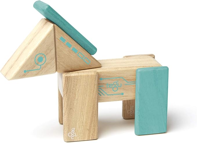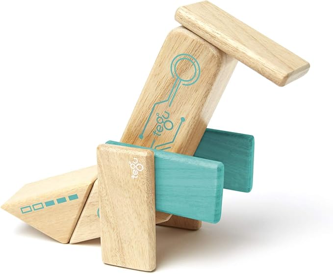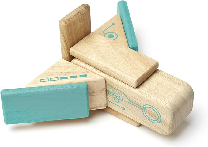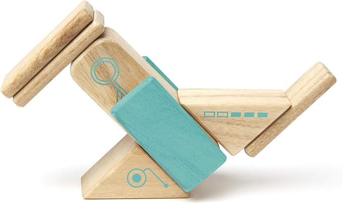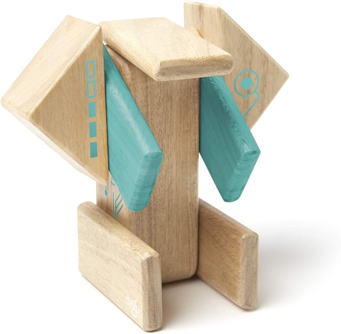 Tegu Robo Magnetic Wooden Block Set, Electric Aqua, 8 PIECE