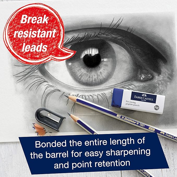 - BREAK-RESISTANT LEAD - Faber-Castell graphite pencils feature a break-resistant lead that is glued the entire length of the pencil to ensure limitless drawing and easy sharpening