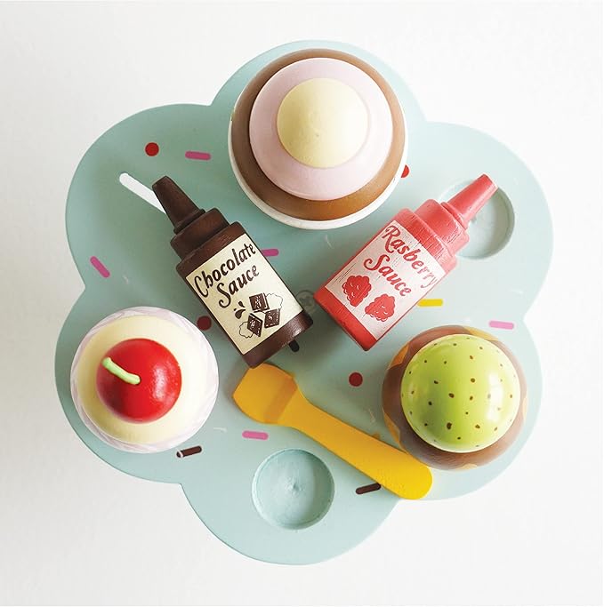 Le Toy Van - Educational Wooden Toy Honeybake Colourful Wooden Carlo's Gelato Pretend Ice Cream Toy | 12 Pieces - Great Role Play Gifts For A Boy Or Girl - 2+ Years