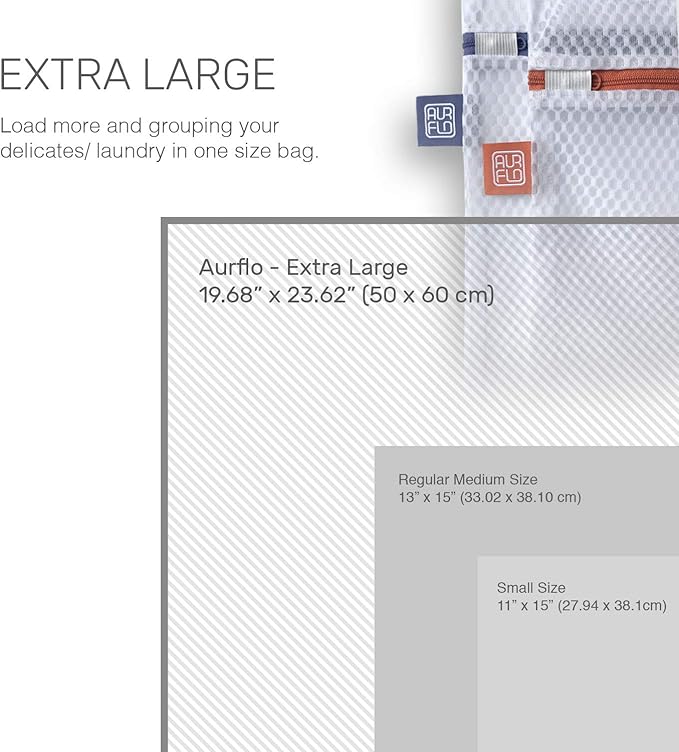 - AURFLO XL Mesh Laundry Bags protect clothes from wear and tear in the washer and dryer. Premium-quality Laundry Mesh Wash Bags for delicates, pets, kids and baby items. Prevent tangles and keep laundry organized for travel, home, or gifts.