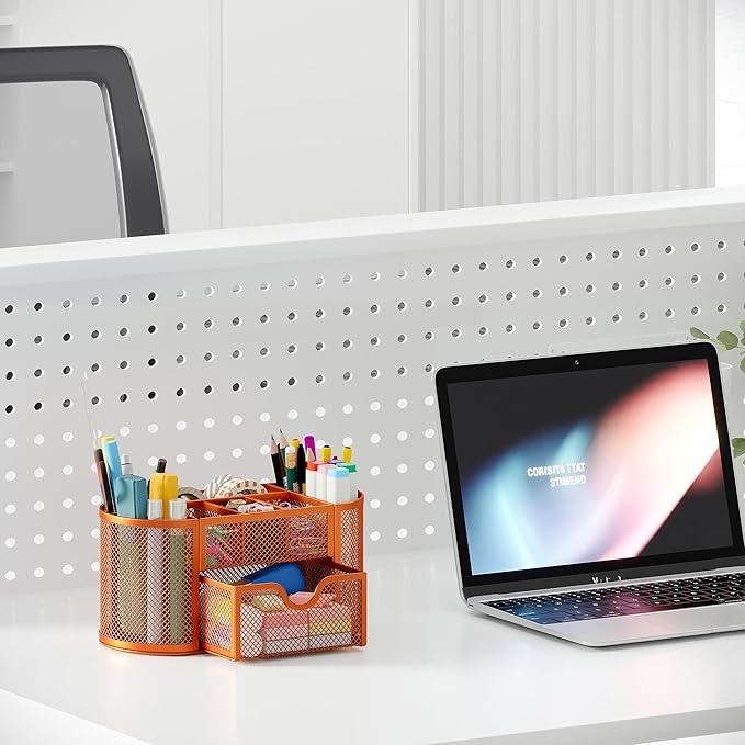- Premium Material: This desk pen holder made of iron material, it ensures the desktop organizer with drawers sturdiness and durability, scratch- and chip-resistant powder-coated finish, allowing for long-term use.