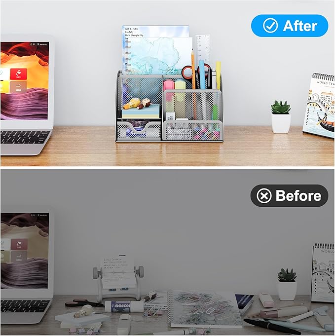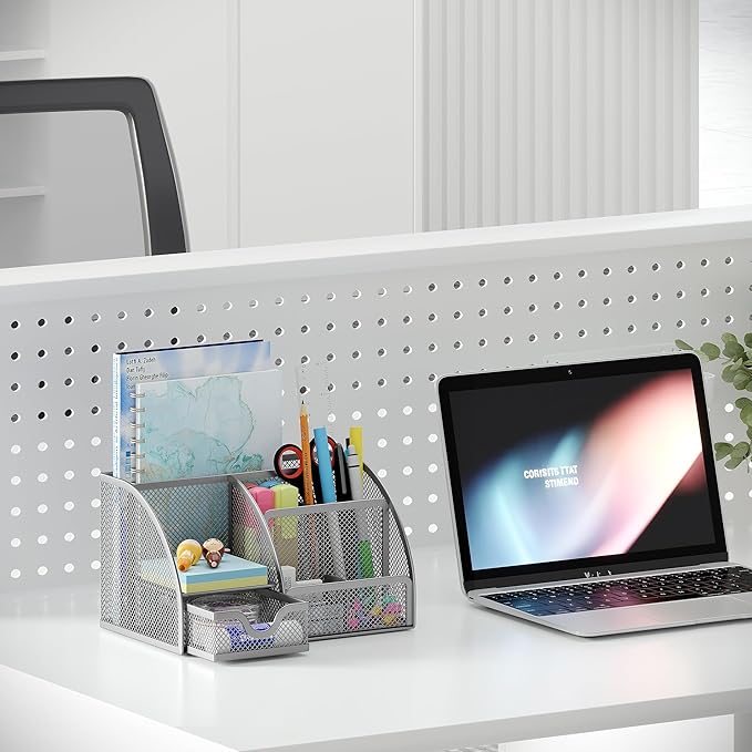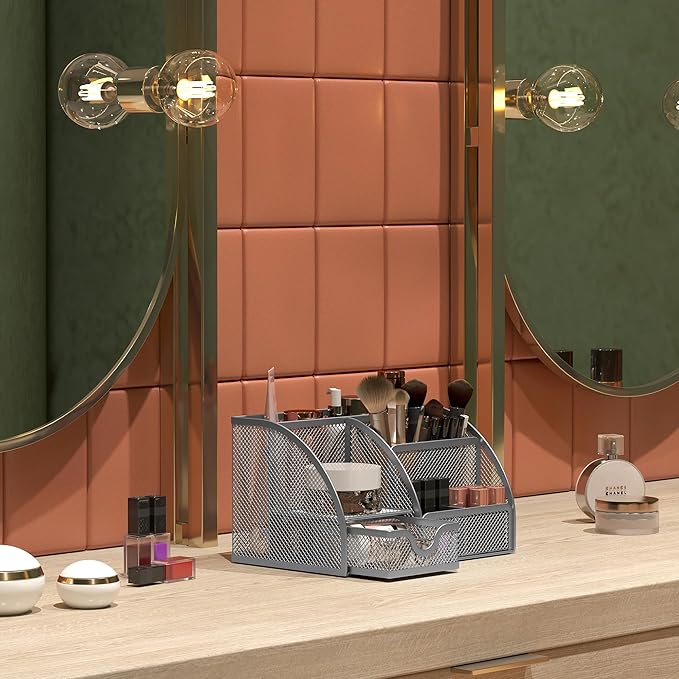 - Wire Mesh Desk Organizer: Crafted from premium mesh metal, this organizer withstands daily use in home offices, classrooms, or makeup vanities. Rust-resistant and easy to clean with a soft cloth.