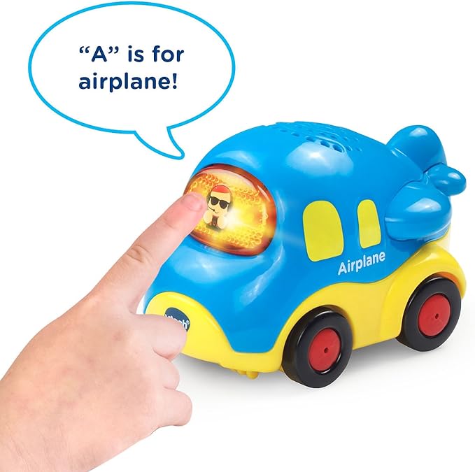 - Press each toy vehicle’s light-up button to hear three sing-along songs and learn the letters “A” and “H”