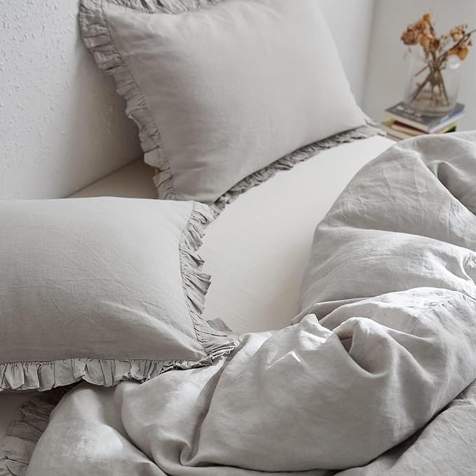 - Ultimate Comfort: The linen ruffle duvet cover twin size is made of 100% natural linen, experience the utmost comfort with the soft and breathable linen material that helps regulate temperature, ensuring a restful night's sleep. Certified by OEKO-TEX Standard 100.