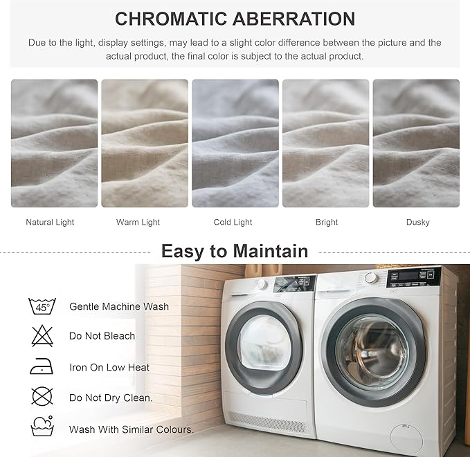 - Thoughtful Details: 4 inner corner straps and hidden button closure ensure a secure fit to prevent the filling from bunching up. The linen bedding set comes with 2 extra spare buttons, no need to worry about unexpected inconvenience.