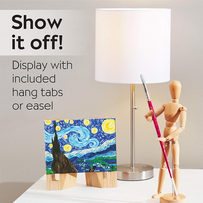 - ACRYLIC PAINT SET – See your artwork come to life in vibrant colors! This acrylic paint set features 6 paint colors and paint brush. Display your completed Starry Night masterpiece once completed with hang tabs or a pop up easel – both included.