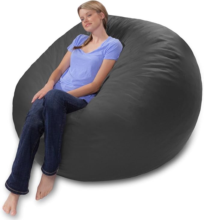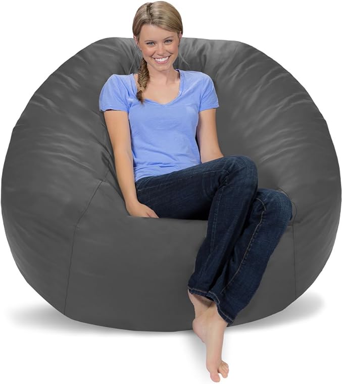 Comfy Sacks Memory Foam Bean Bag Chair, Grey Faux Leather