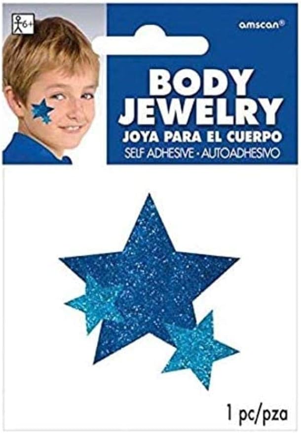Amscan Stars Assorted Sizes Glitter Self-Adhesive Body Jewelry, 1, Blue
