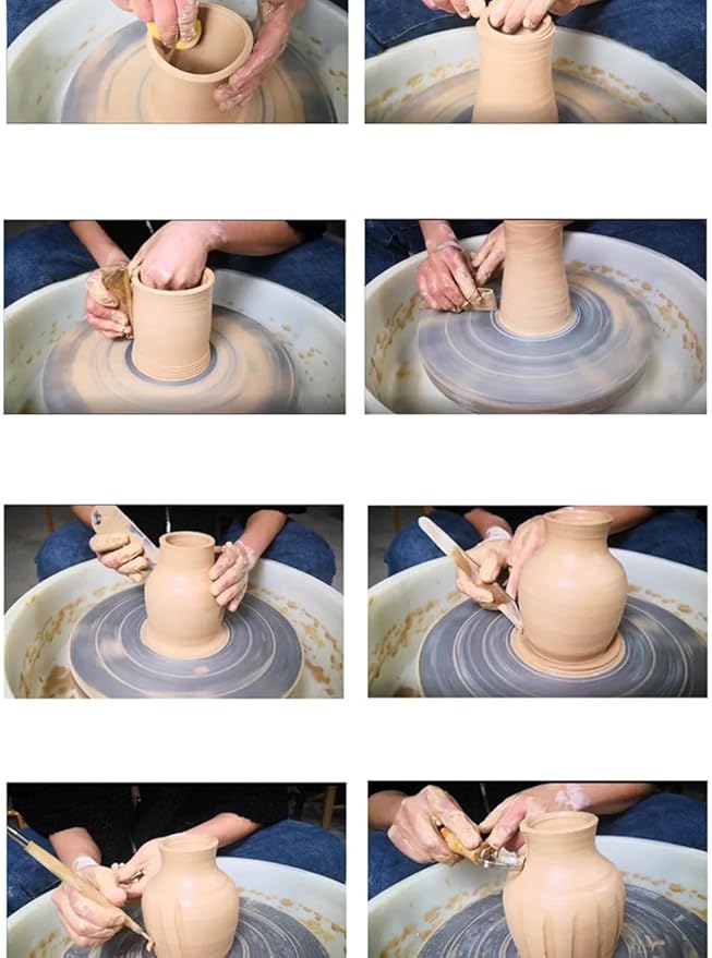 - Loop tool - for trimming and shaving large amounts of clay;1 x potter's rib - double ended tool for cutting and shaving clay;1 x ribbon tool - double ended tool for cutting and shaving clay;1 x needle - for adding fine details and piercing;1 x wood modeling Tool - for sculpting and adding detail;1 x sponge - to clean and smooth;1 x steel scraper - for smoothing and shaping;1 x wire clay cutter - for slicing clay or removing pottery from wheel