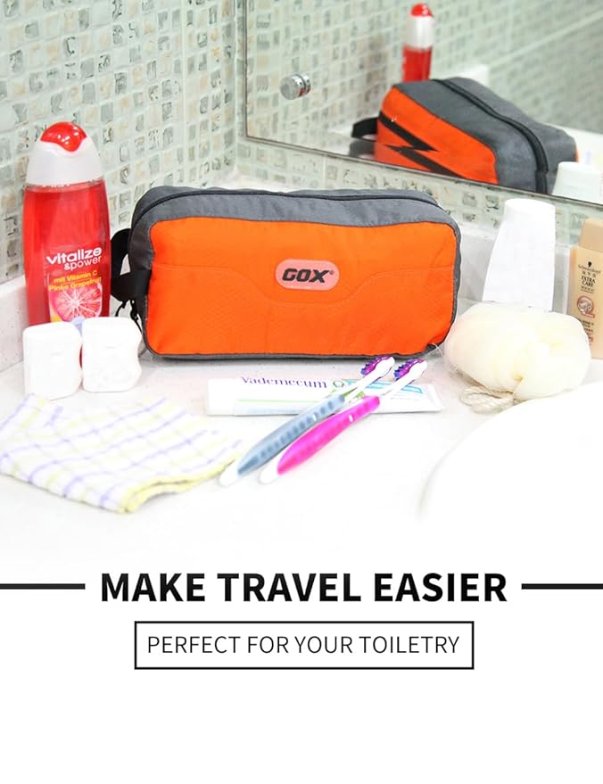 GOX Small Travel Toiletry Bag, Dopp Kit Case For Men, Multifunction Organizer Pouch (Orange/Grey)