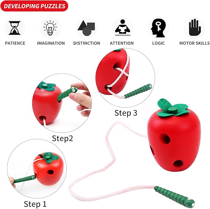 - Montessori Learning Toys: Engage your child’s curiosity with this wooden lacing toy, perfect for toddlers aged 1-3. Designed for Montessori learning, these toys help improve fine motor skills and hand-eye coordination through engaging threading activities.