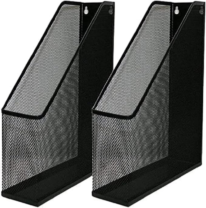 YBM HOME Steel Mesh Wall Magazine File Holder for Home & Office Organization, Serves as a Magazine Rack, Desk Organizer, Letter and Mail Bin, Holds Up to 20 Magazines - 2-Pack Black, 1101-2