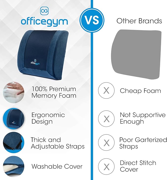 - Improve Your Sitting Posture – Enhance your comfort and posture with the OFFICEGYM lumbar pillow for office chair. Perfect for long hours at a desk or driving, this lower back support pillow provides essential alignment to reduce strain. The ergonomic lumbar cushion with premium memory foam ensures a healthier sitting position while promoting better posture all day.