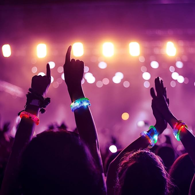 - Packing include: 12 x Multicolor LED Flashing Bracelets, 12 x Extra Spare Batteries (Battery is replaceable).