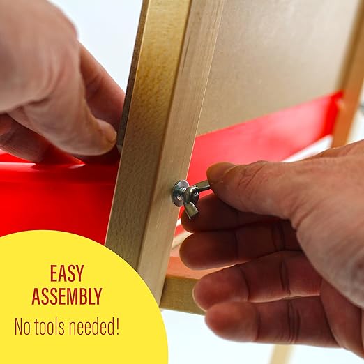 • AMPLE STORAGE – Equipped with a central tray and two large plastic trays for holding paint cups and art supplies.