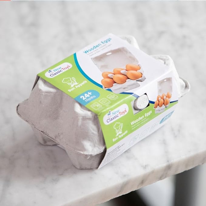 New Classic Toys Wooden Pretend Play Toy for Kids Six Wooden Eggs Cooking Simulation Educational Toys and Color Perception Toy for Preschool Age Toddlers Boys Girls