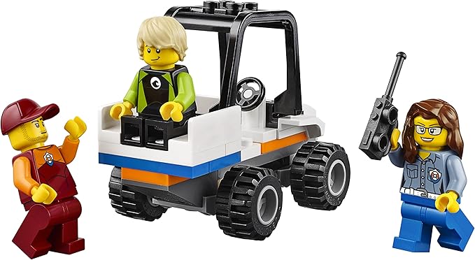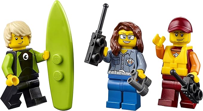 - Includes 3 minifigures: a lifeguard, surfer and an ATV driver, plus a shark figure