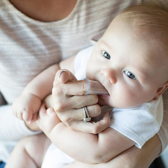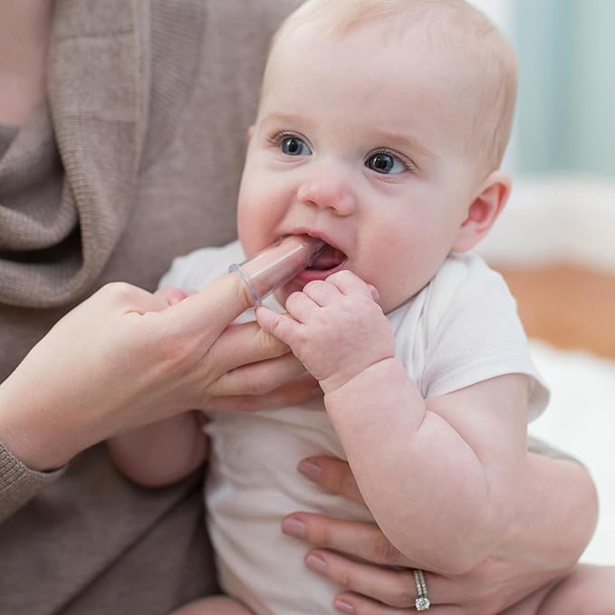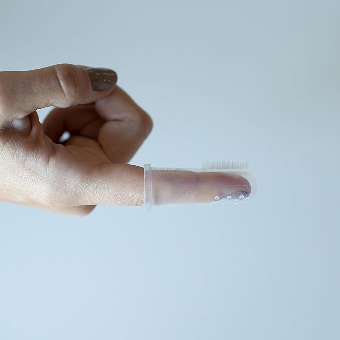 - BABY’S FIRST TOOTHBRUSH. Teach baby healthy oral hygiene habits with the super-soft 100% silicone finger toothbrush that’s gentle on sensitive mouths.