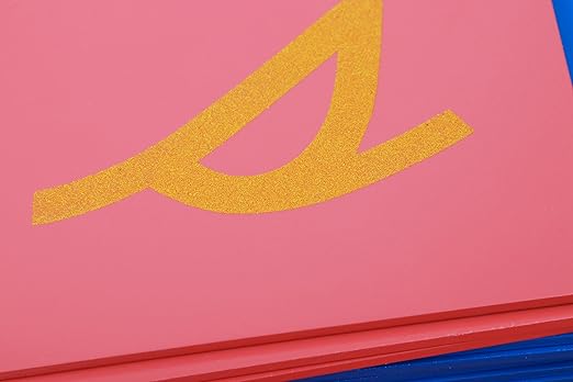 - 26 cursive lower case sandpaper letters. Consonants are on pink wooden boards and vowels on blue boards. Includes extra y on blue board.