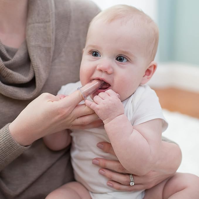 - SILICONE FINGER TOOTHBRUSH 3M+. Teach baby healthy oral hygiene habits with the soft, 100% silicone toothbrush.