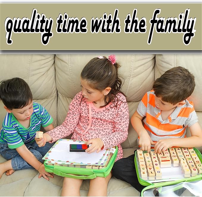 - PRACTICAL & PORTABLE – Keep the kids busy anywhere! Your alphabet stamp set and supplies all fit inside the convenient hand-held travel case. Individual slots for each stamp, plus extra storage, keep everything you need in place and prevent items from getting lost.