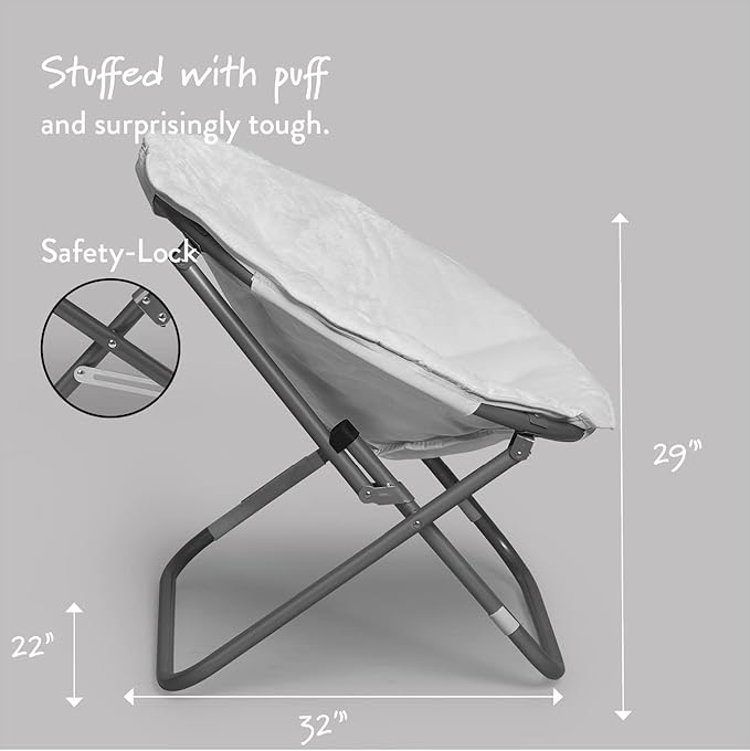 - FOLDABLE: A foldable steel frame supports up to 225 lbs and folds flat when not in use, making it easy to hide this faux fur saucer chair out of sight without taking up a significant amount of room in tight spaces. This saucer chair also has a safety locking mechanism on the leg for added support. This saucer chair is easy to transport around making it an item that is easy to carry. Carry this saucer chair with you to your next destination, as it is also travel friendly.