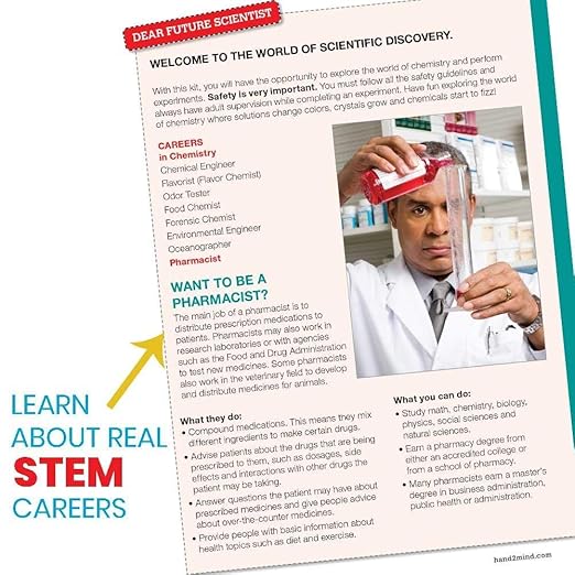 • STEM KIT AT HOME: Fizz! Chemistry lab kit is authenticated as an educational product by STEM. Org. The fact-filled colorful lab guide is chock-full of pictures and information for hours of fun in your own chemistry lab The best stem experiment, birthday, holiday, arts and crafts gift for girls, boys, kids, teens ages 8 and up with adult supervision.
