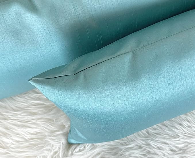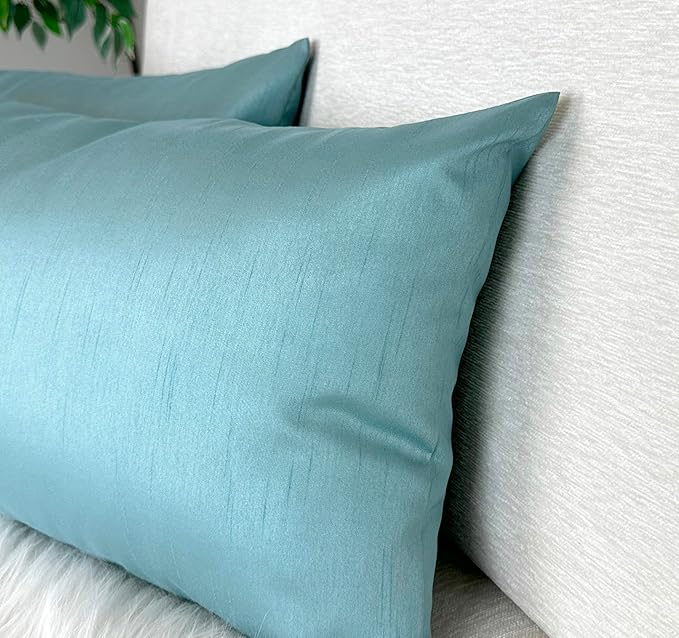 Aiking Home 12x18 Inches Faux Silk Rectangular Throw Pillow Cover, Zipper Closure, Aqua (Set of 2)