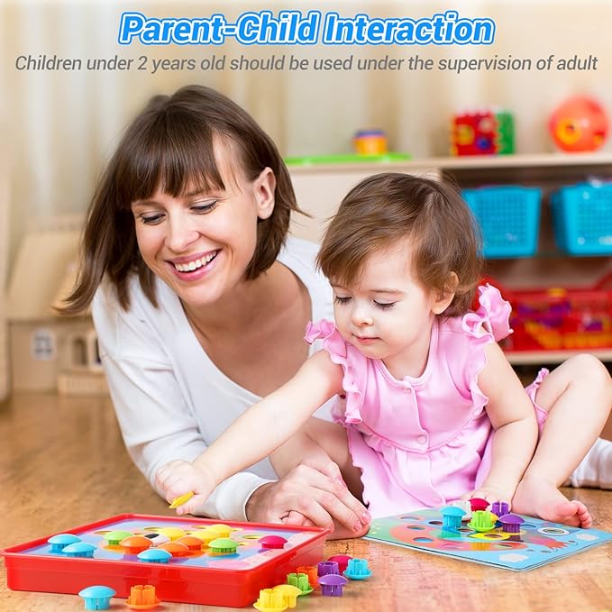 - Great Gift: Includes 46 colorful buttons, 12 extra buttons, 10 different pictures, 1 peg board, and 1 storage tray for a wonderful surprise gift.
